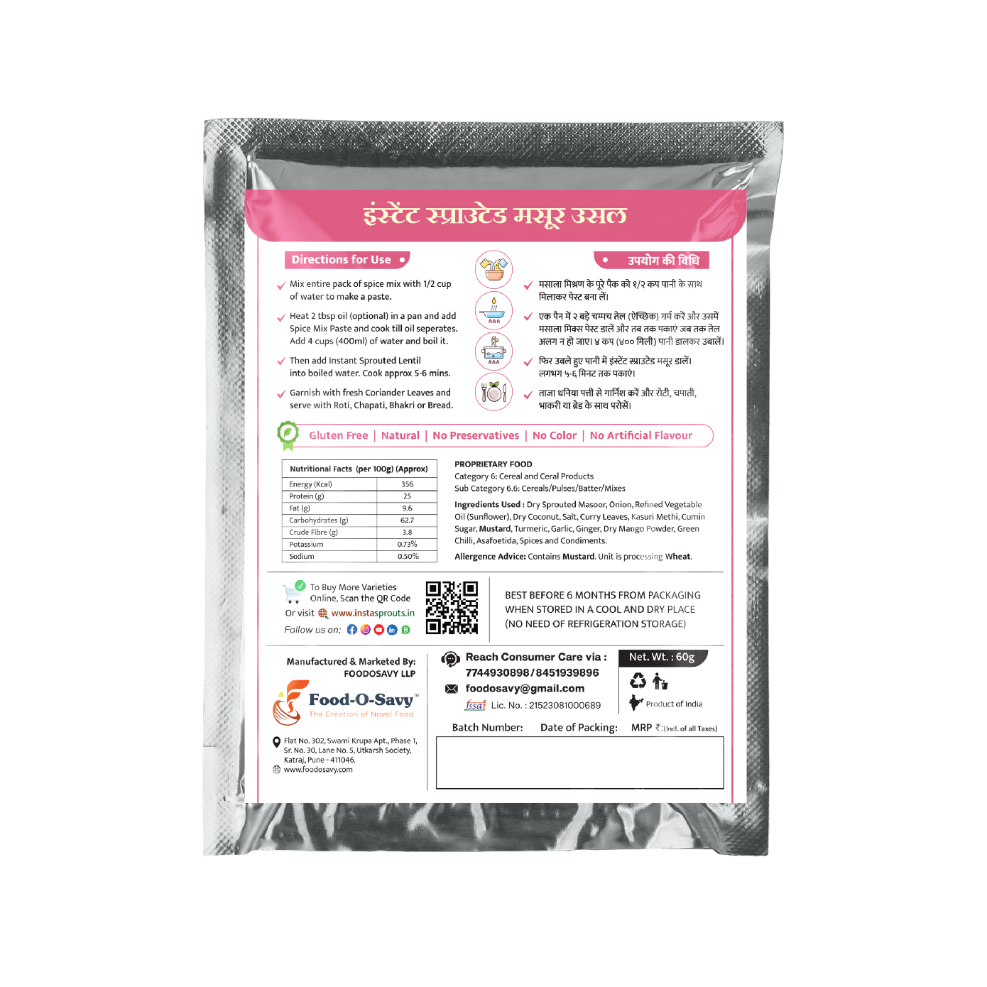 Experience the rich, earthy flavor of “Akkha Masoor” (Whole Red Lentils) in a matter of minutes! Insta Sprouts Instant Sprouted Masoor Usal brings you the beloved taste of Dhaba-style curries right in your own kitchen. While split masoor dal is common, the whole sprouted lentil offers a delightful texture—firm on the outside, creamy on the inside, and packed with a nutty flavor that pairs perfectly with our signature spice blend. It’s a hearty, satisfying meal that offers the comfort of home-cooked food without the long soaking and slow-cooking process. Perfect for a quick weeknight dinner that feels special.
